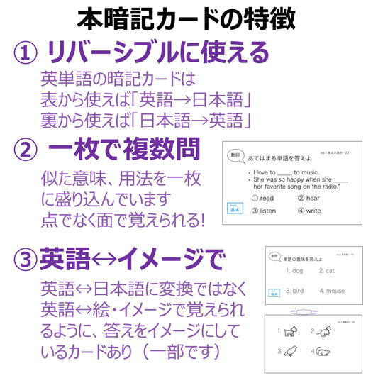 (暗記カード)中学受験終了組向け 英語【小学生で習う英単語550 4冊セット】