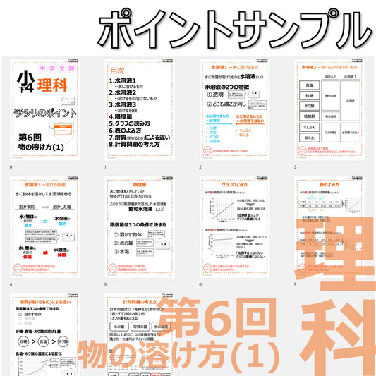 (PDF 予シリのポイント)4年下 理科 第6回(化学) 物の溶け方(1) ダウンロードファイル
