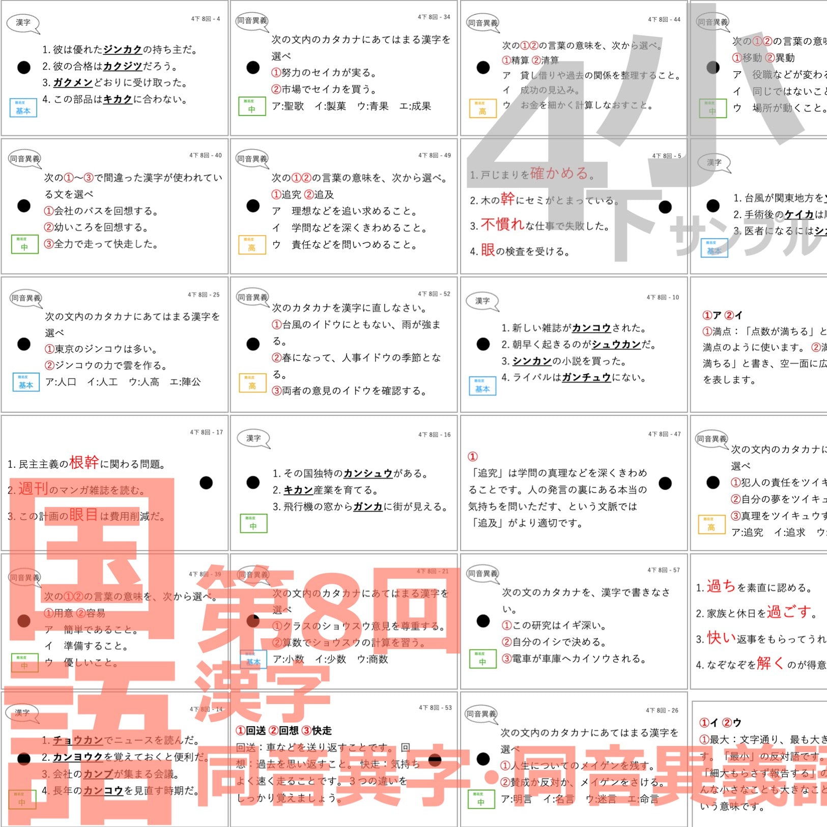 ・カードの単位は予習シリーズの単元に準拠しておりますが、一つ一つの問題は独自製作しております。このため表現が異なる場合、範囲が厳密にはずれる場合もございますが、実際のテスト対策としては有効と考えてご用意しております