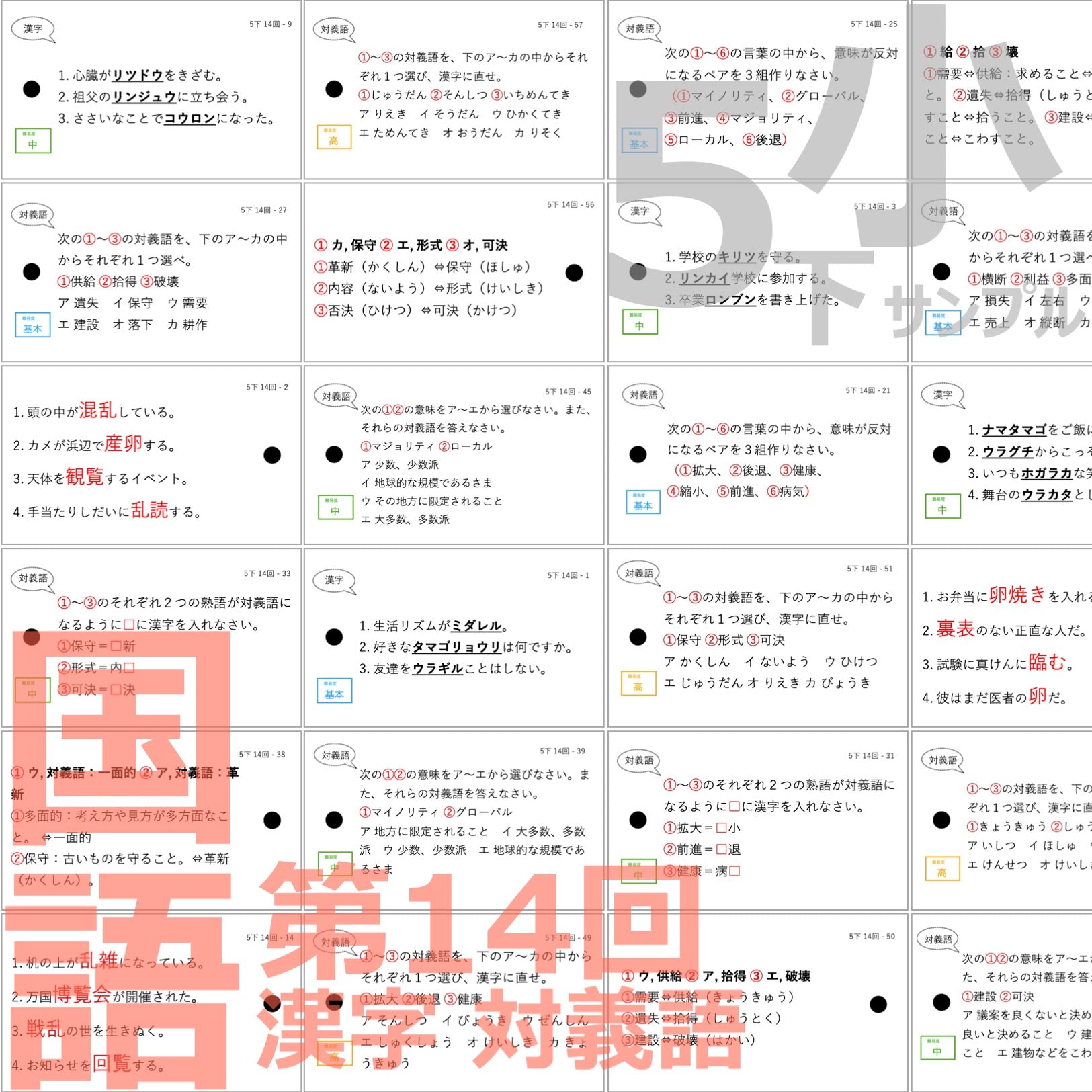 ・カードの単位は予習シリーズの単元に準拠しておりますが、一つ一つの問題は独自製作しております。このため表現が異なる場合、範囲が厳密にはずれる場合もございますが、実際のテスト対策としては有効と考えてご用意しております