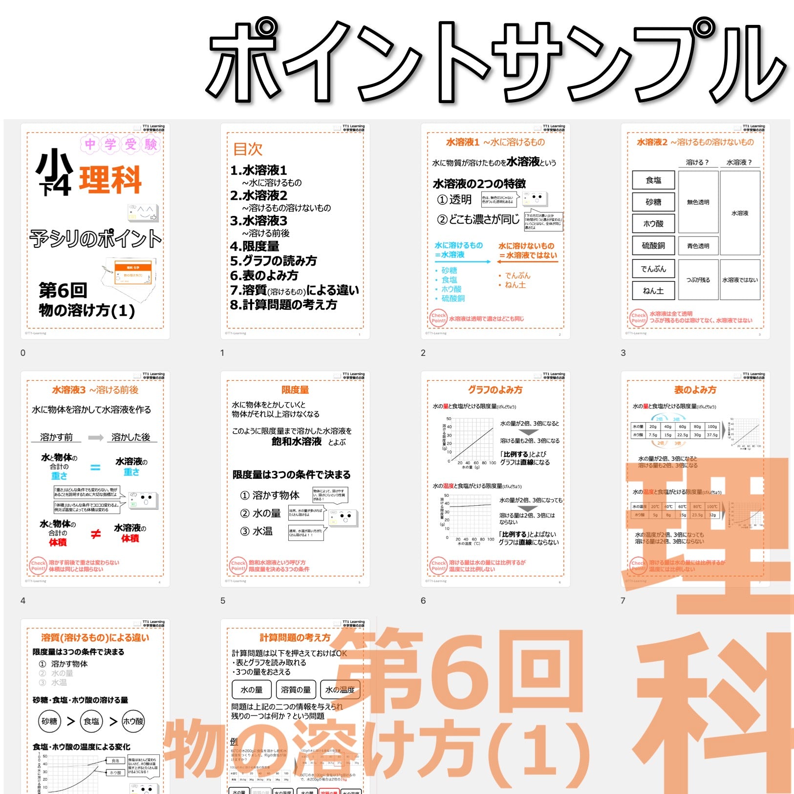 (PDF 予シリのポイント)4年下 理科 第6回(化学) 物の溶け方(1) ダウンロードファイル